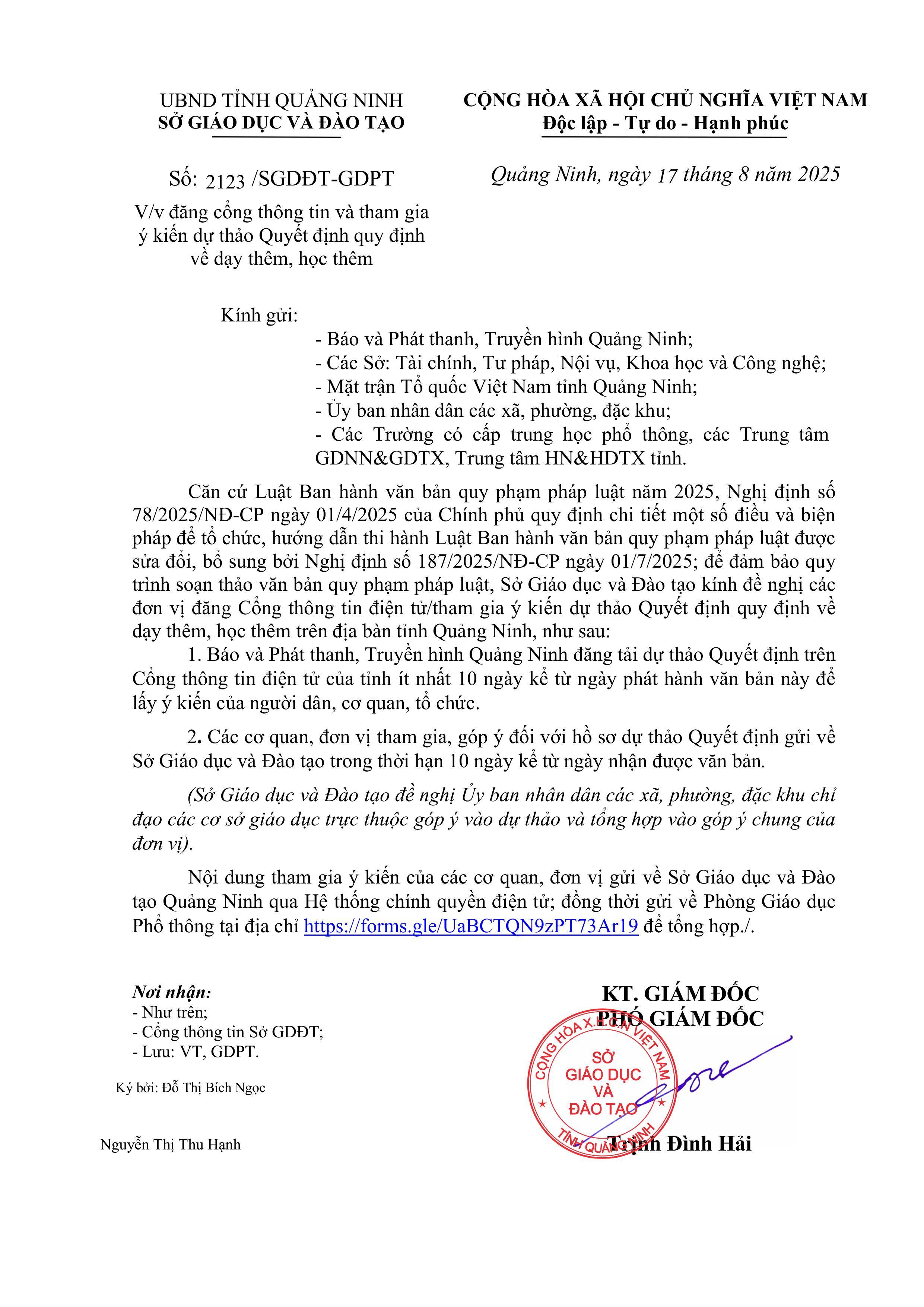 Thông báo số 292/TB-SGDĐT ngày 06/02/2025 của Sở Giáo dục và Đào tạo Quảng Ninh về việc Thông báo...